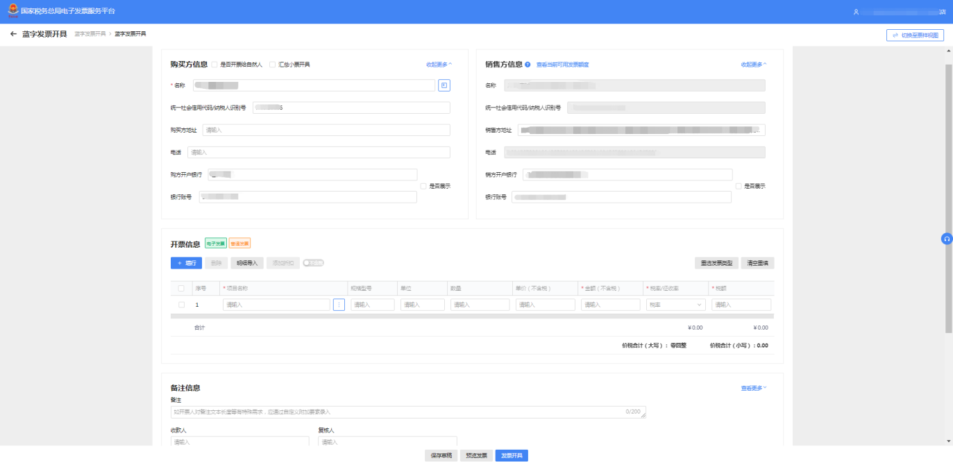 點開電子稅務局【開票業務】,進入藍字發票開具界面。