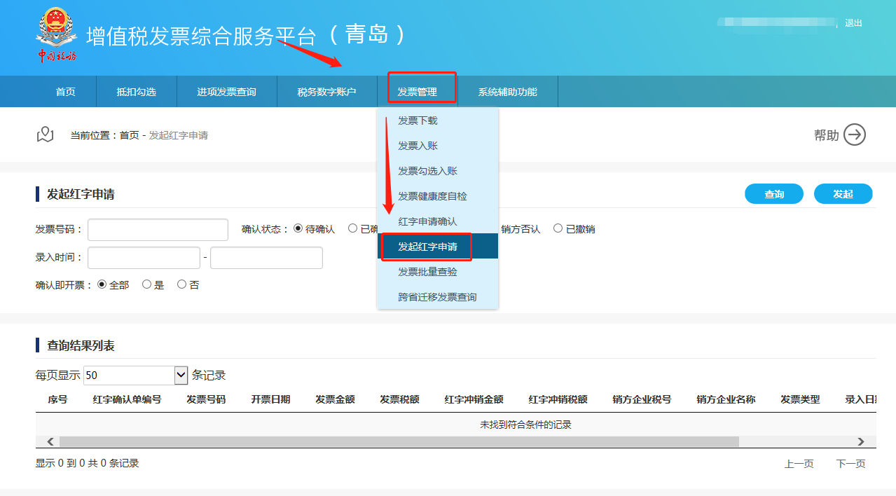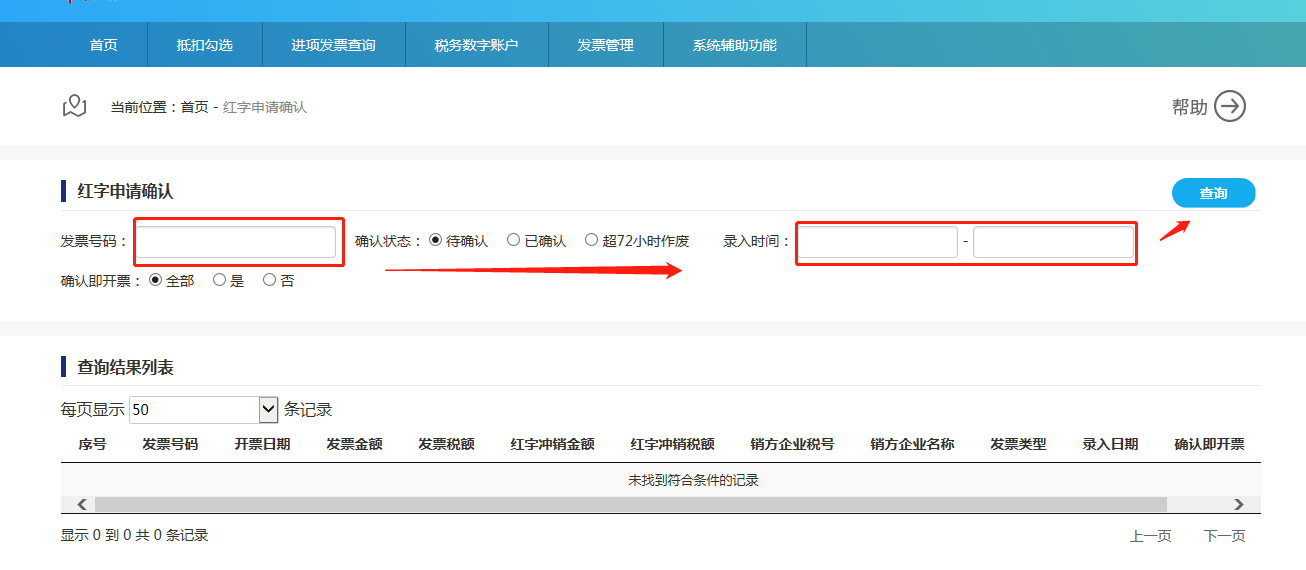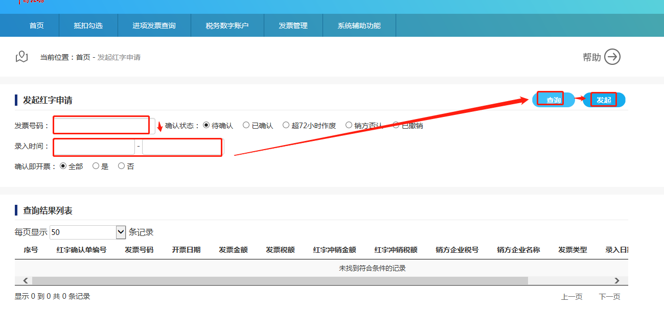 填入“發票號碼”、“錄入時間”后,依次點擊【查詢】、【發起】。
