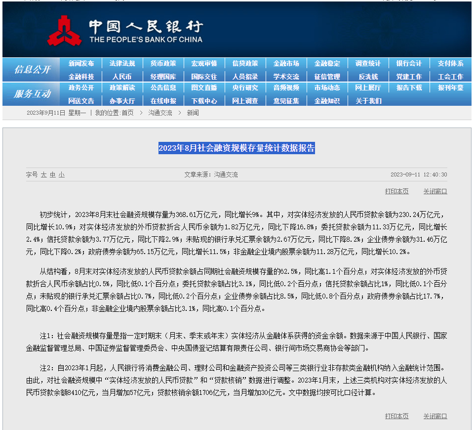 體經濟發放的人民幣貸款”和“貸款核銷”數據進行調整。2023年1月末,上述三類機構對實體經濟發放的人民幣貸款余額8410億元,當月增加57億元;貸款核銷余額1706