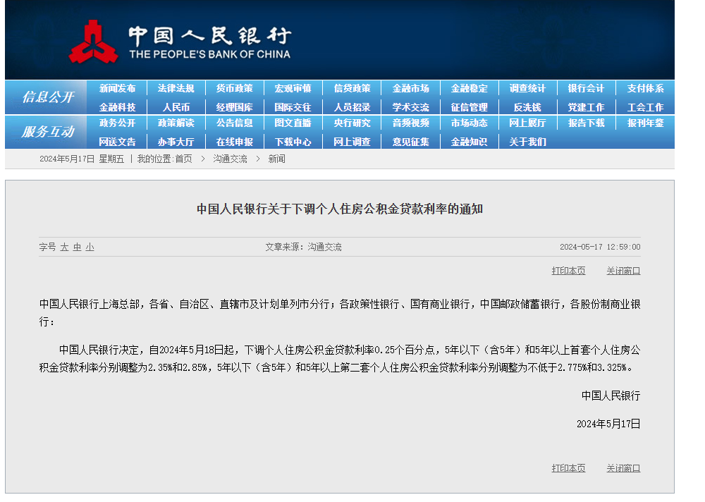 中(zhong)國人(ren)民銀行關于下調個人(ren)住房(fang)公(gong)積金貸款利率的(de)通知