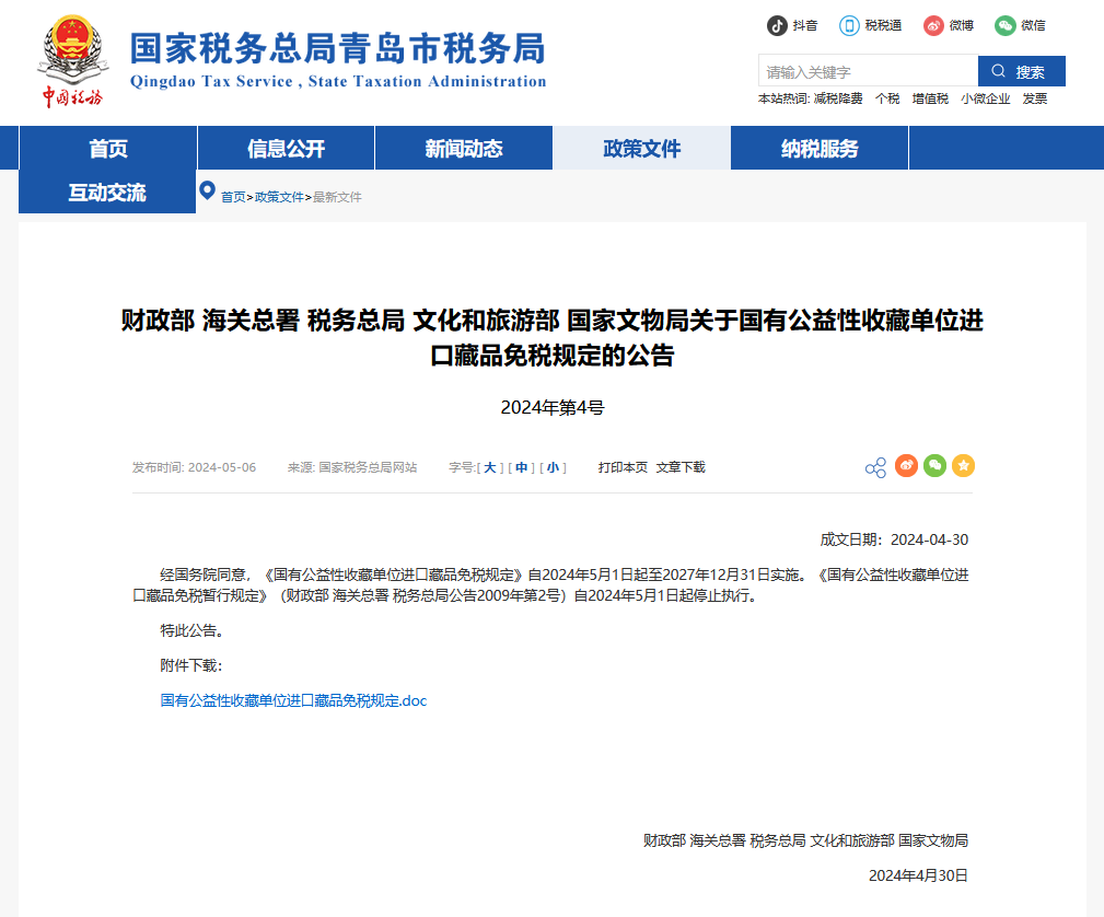 發布時間: 2024-05-06 來源: 國家稅務總局網站