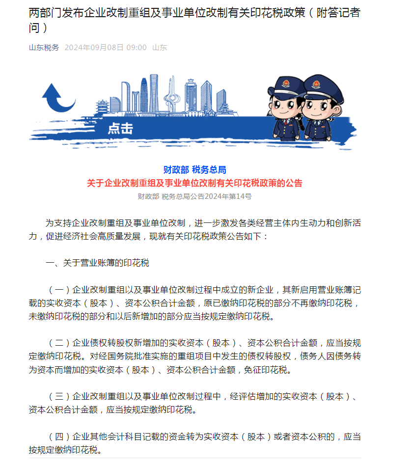 兩部門發布企業改制重組及事業單位改制有關印花稅政策(附答記者問)
