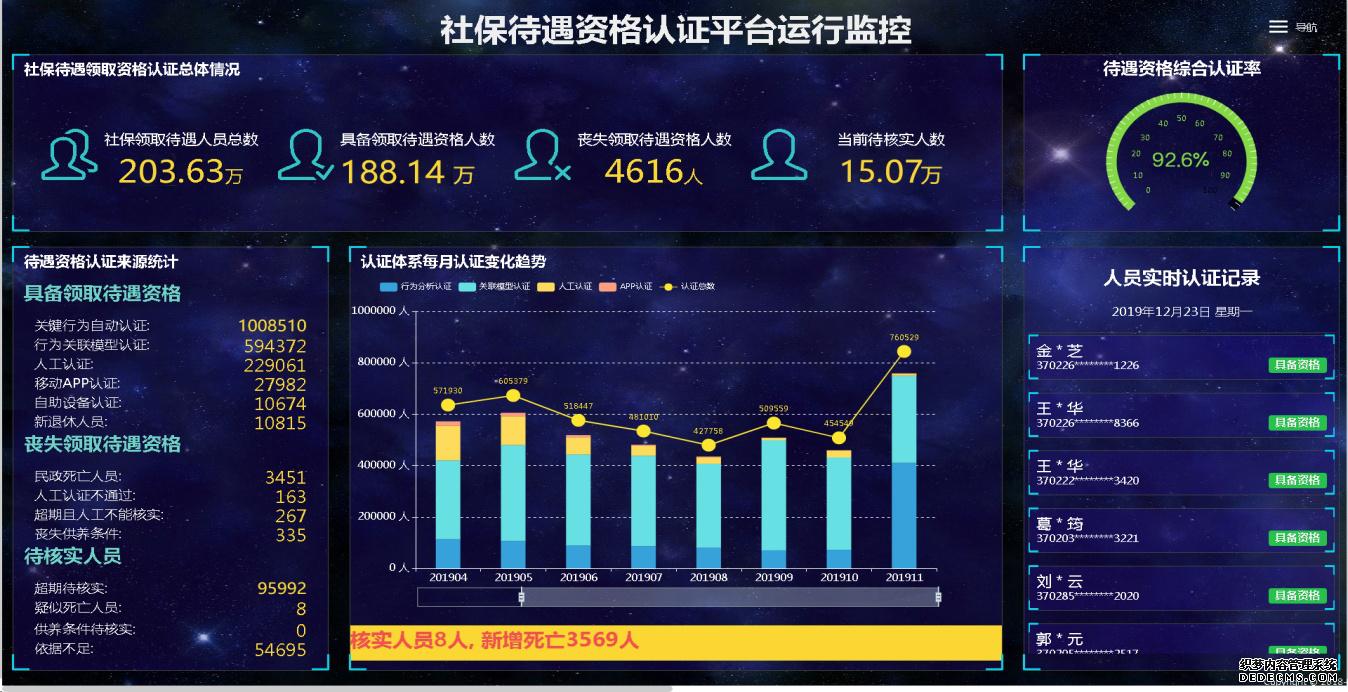 青島社保待遇大數據靜默認證平臺實現動態認證。