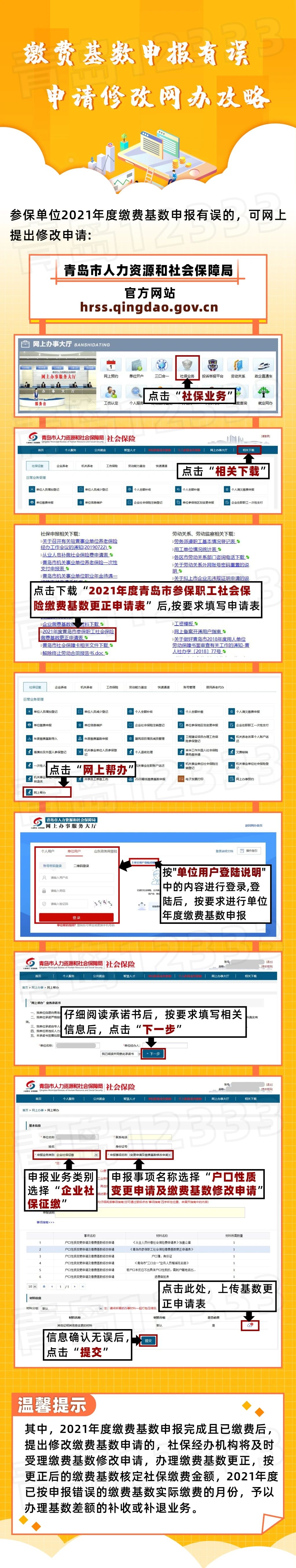 2021年社保繳費基數申報成功,但參保單位申報數據有誤,無論是否已繳費,均可網辦申請修改已申報的繳費基數